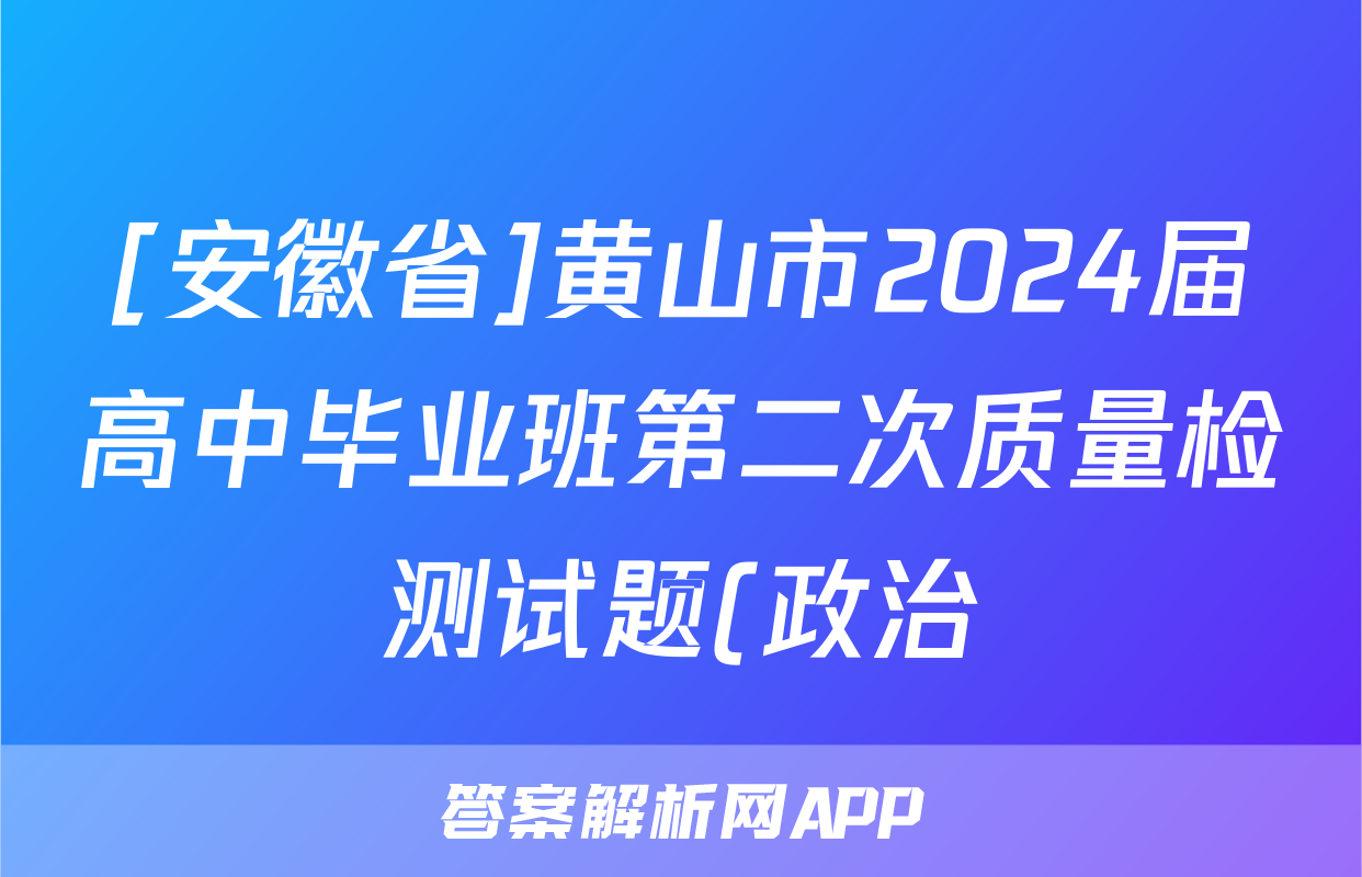 [安徽省]黄山市2024届高中毕业班第二次质量检测试题(政治)正在持续更新,目前2026届海淀八模答案网为大家整理了相关试题及答案,供大家查缺补漏,高效提升成绩。