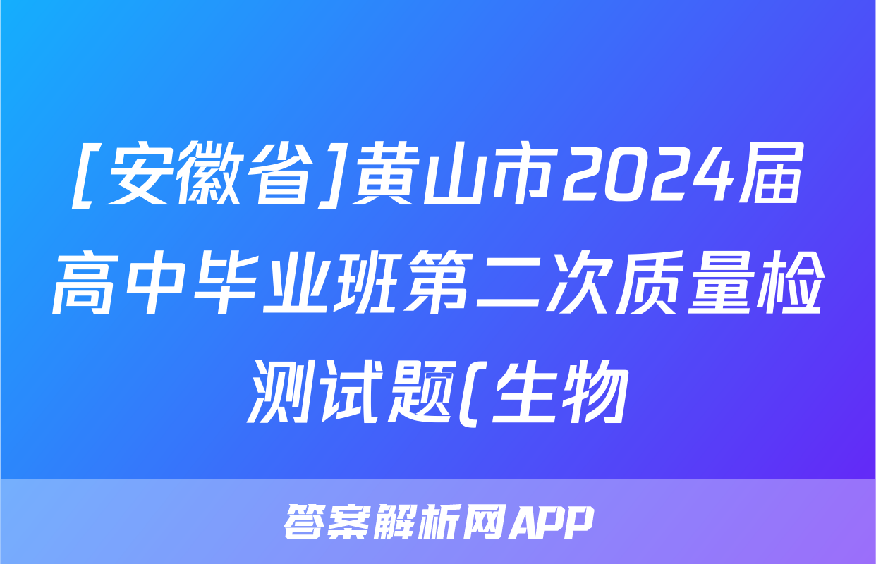 [安徽省]黄山市2024届高中毕业班第二次质量检测试题(生物)正在持续更新,目前2026届海淀八模答案网为大家整理了相关试题及答案,供大家查缺补漏,高效提升成绩。