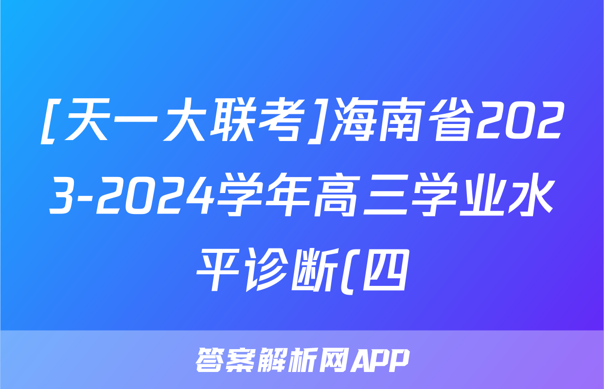 [天一大联考]海南省2023-2024学年高三学业水平诊断(四)4试题(地理)正在持续更新,目前2026届海淀八模答案网为大家整理了相关试题及答案,供大家查缺补漏,高效提升成绩。