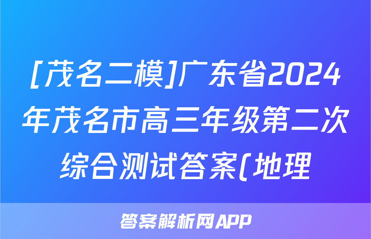 [茂名二模]广东省2024年茂名市高三年级第二次综合测试答案(地理)正在持续更新,目前2026届海淀八模答案网为大家整理了相关试题及答案,供大家查缺补漏,高效提升成绩。