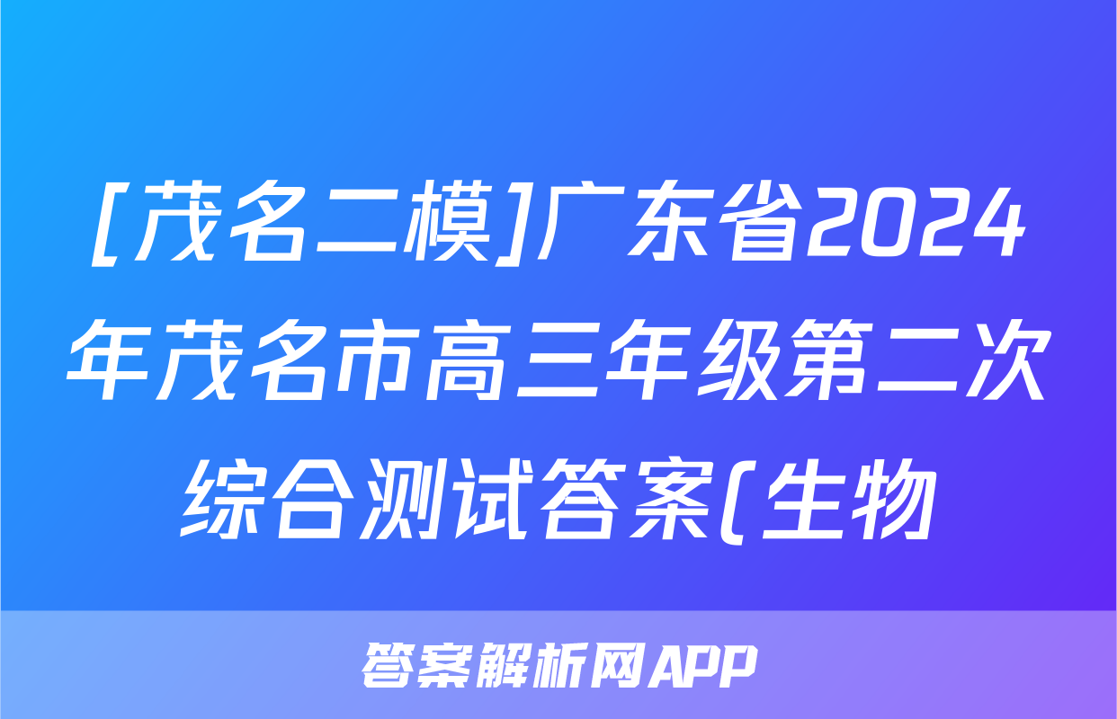 [茂名二模]广东省2024年茂名市高三年级第二次综合测试答案(生物)正在持续更新,目前2026届海淀八模答案网为大家整理了相关试题及答案,供大家查缺补漏,高效提升成绩。
