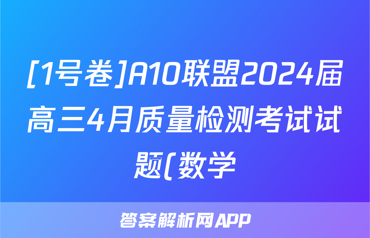[1号卷]A10联盟2024届高三4月质量检测考试试题(数学)正在持续更新,目前2026届海淀八模答案网为大家整理了相关试题及答案,供大家查缺补漏,高效提升成绩。