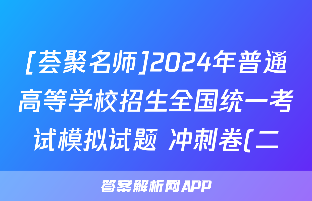 [荟聚名师]2024年普通高等学校招生全国统一考试模拟试题 冲刺卷(二)2试题(物理)正在持续更新,目前2026届海淀八模答案网为大家整理了相关试题及答案,供大家查缺补漏,高效提升成绩。