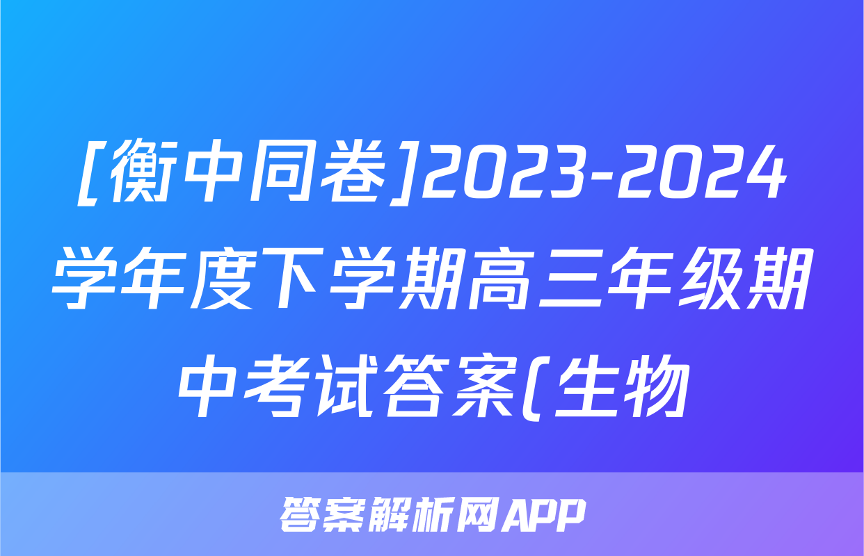 [衡中同卷]2023-2024学年度下学期高三年级期中考试答案(生物)正在持续更新,目前2026届海淀八模答案网为大家整理了相关试题及答案,供大家查缺补漏,高效提升成绩。