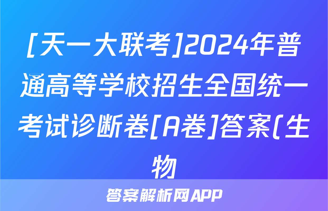 [天一大联考]2024年普通高等学校招生全国统一考试诊断卷[A卷]答案(生物)正在持续更新,目前2026届海淀八模答案网为大家整理了相关试题及答案,供大家查缺补漏,高效提升成绩。