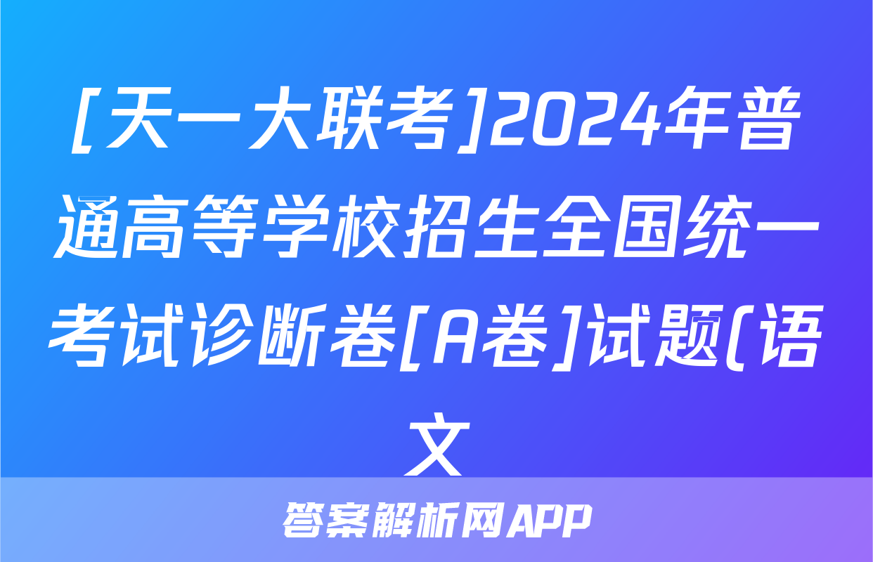 [天一大联考]2024年普通高等学校招生全国统一考试诊断卷[A卷]试题(语文)正在持续更新,目前2026届海淀八模答案网为大家整理了相关试题及答案,供大家查缺补漏,高效提升成绩。