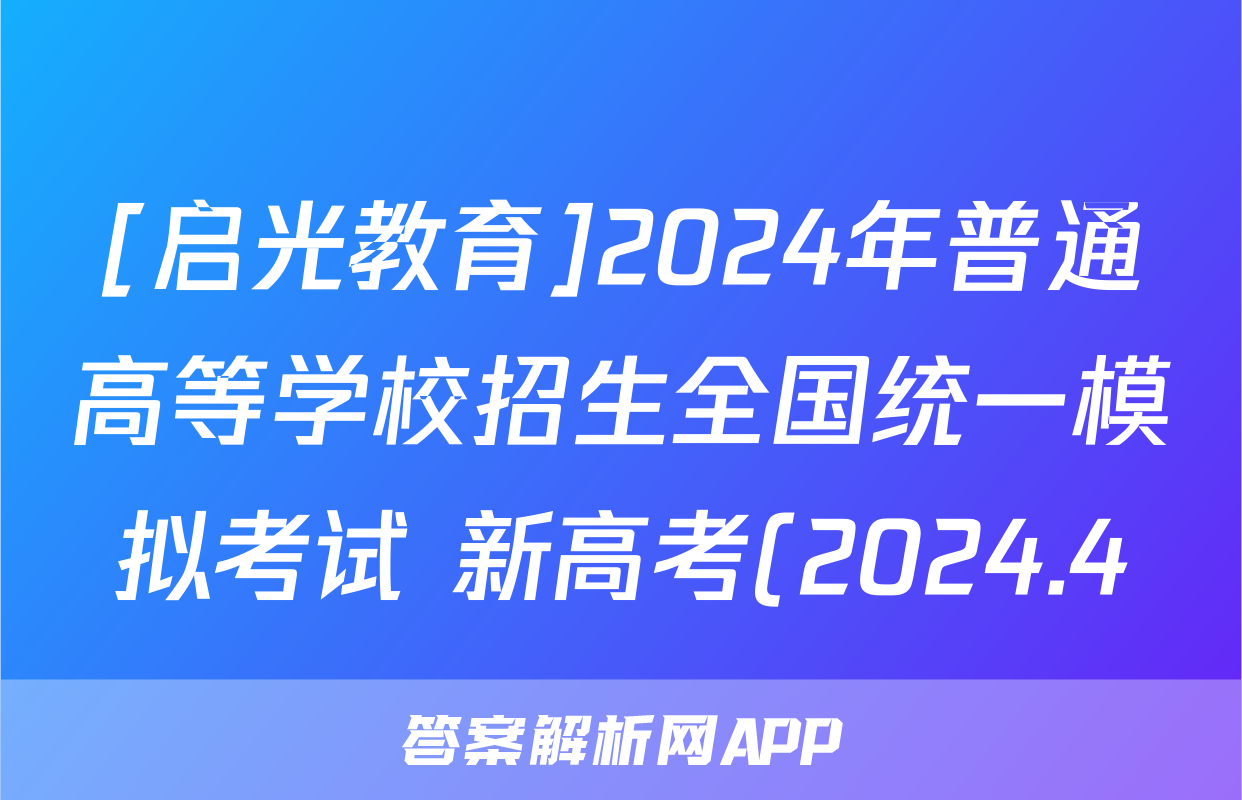 [启光教育]2024年普通高等学校招生全国统一模拟考试 新高考(2024.4)答案(历史)正在持续更新,目前2026届海淀八模答案网为大家整理了相关试题及答案,供大家查缺补漏,高效提升成绩。