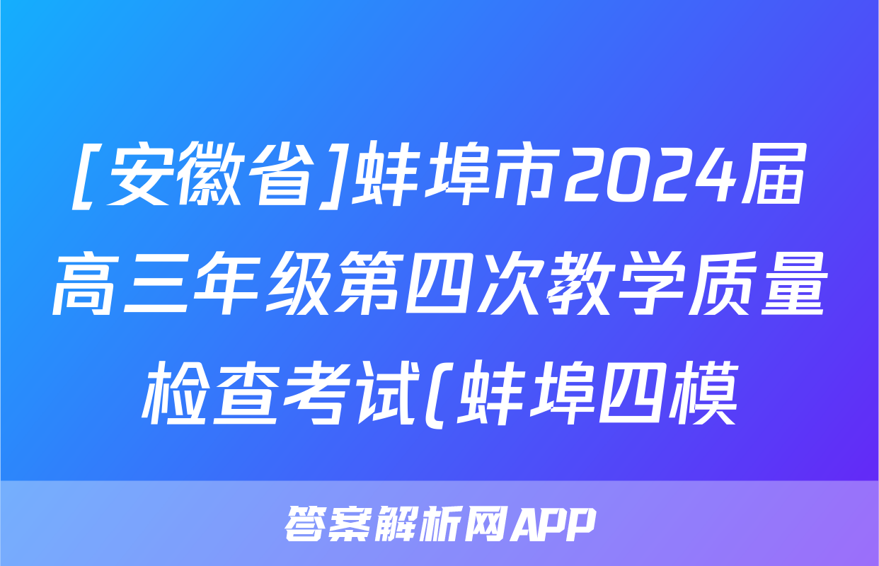 [安徽省]蚌埠市2024届高三年级第四次教学质量检查考试(蚌埠四模)试题(语文)正在持续更新,目前2026届海淀八模答案网为大家整理了相关试题及答案,供大家查缺补漏,高效提升成绩。