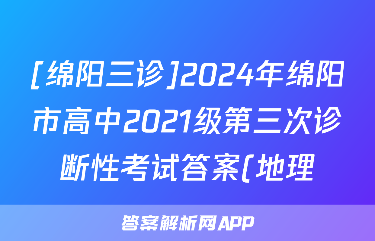 [绵阳三诊]2024年绵阳市高中2021级第三次诊断性考试答案(地理)正在持续更新,目前2026届海淀八模答案网为大家整理了相关试题及答案,供大家查缺补漏,高效提升成绩。