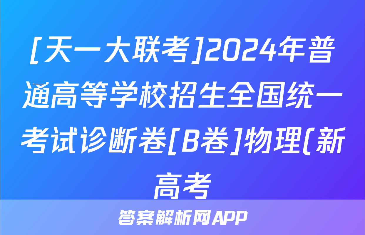 [天一大联考]2024年普通高等学校招生全国统一考试诊断卷[B卷]物理(新高考)试题正在持续更新,目前2026届海淀八模答案网为大家整理了相关试题及答案,供大家查缺补漏,高效提升成绩。
