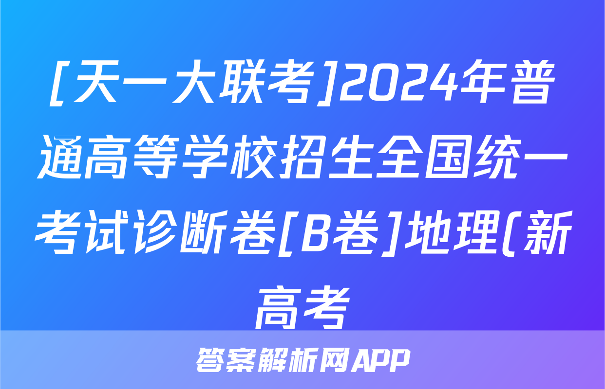 [天一大联考]2024年普通高等学校招生全国统一考试诊断卷[B卷]地理(新高考)试题正在持续更新,目前2026届海淀八模答案网为大家整理了相关试题及答案,供大家查缺补漏,高效提升成绩。
