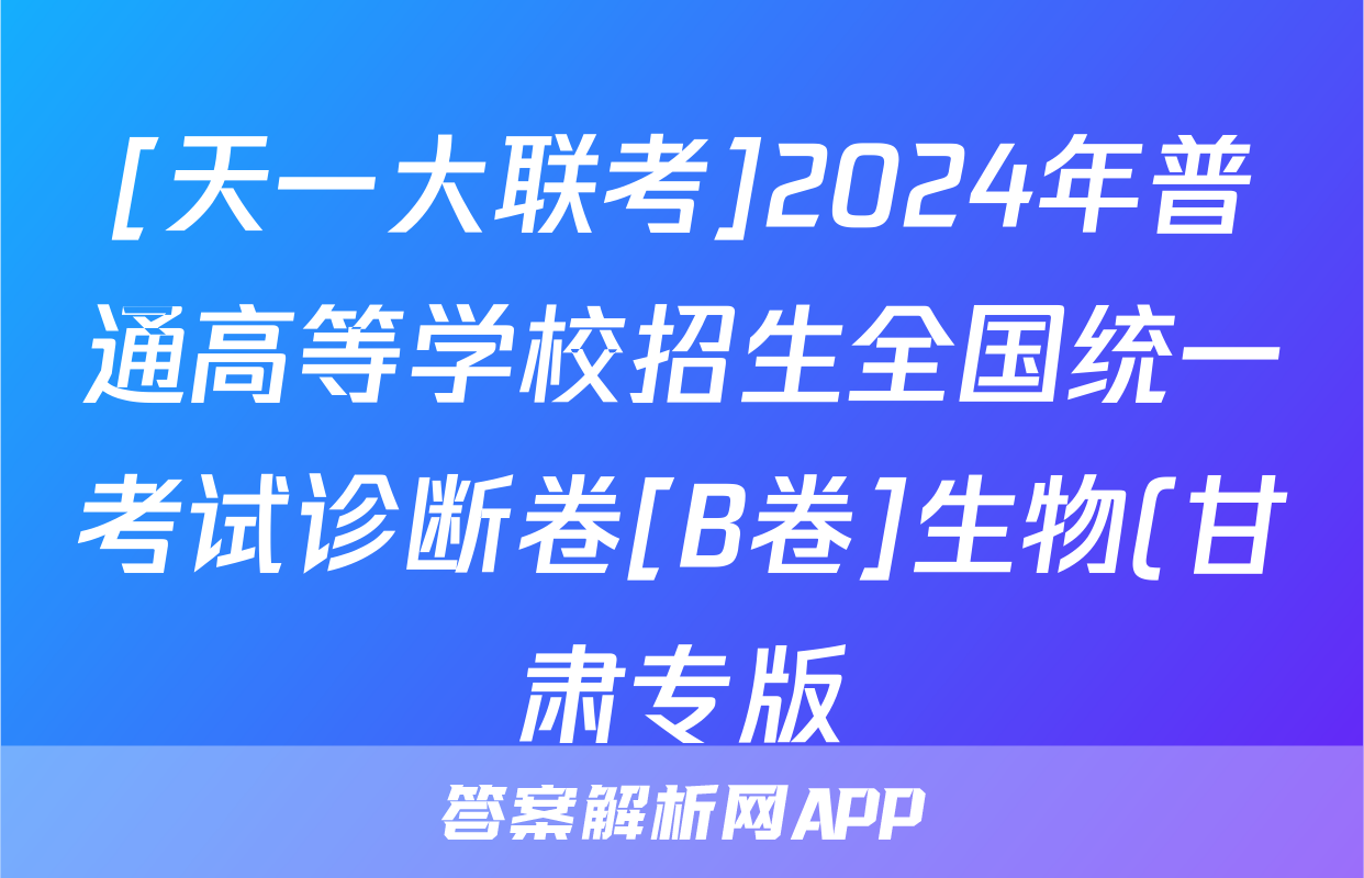 [天一大联考]2024年普通高等学校招生全国统一考试诊断卷[B卷]生物(甘肃专版)答案正在持续更新,目前2026届海淀八模答案网为大家整理了相关试题及答案,供大家查缺补漏,高效提升成绩。