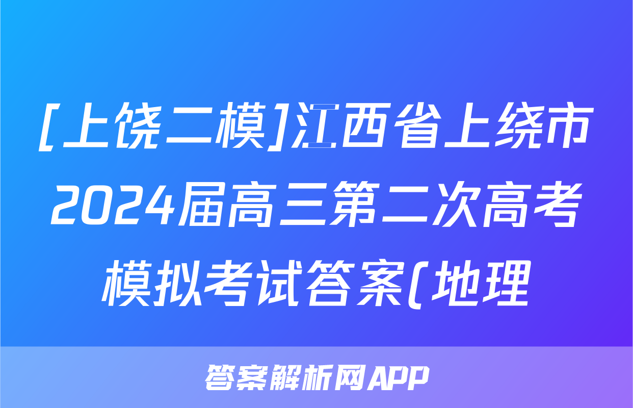 [上饶二模]江西省上绕市2024届高三第二次高考模拟考试答案(地理)正在持续更新,目前2026届海淀八模答案网为大家整理了相关试题及答案,供大家查缺补漏,高效提升成绩。