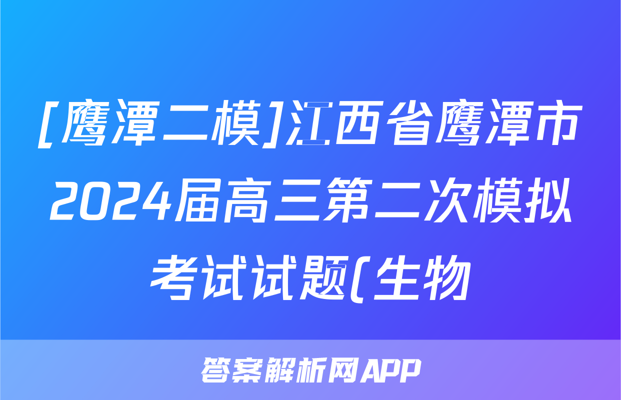 [鹰潭二模]江西省鹰潭市2024届高三第二次模拟考试试题(生物)正在持续更新,目前2026届海淀八模答案网为大家整理了相关试题及答案,供大家查缺补漏,高效提升成绩。