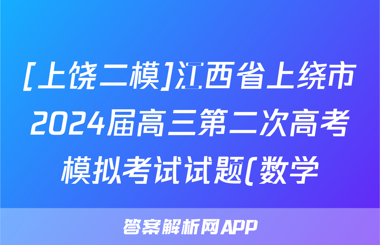 [上饶二模]江西省上绕市2024届高三第二次高考模拟考试试题(数学)正在持续更新,目前2026届海淀八模答案网为大家整理了相关试题及答案,供大家查缺补漏,高效提升成绩。