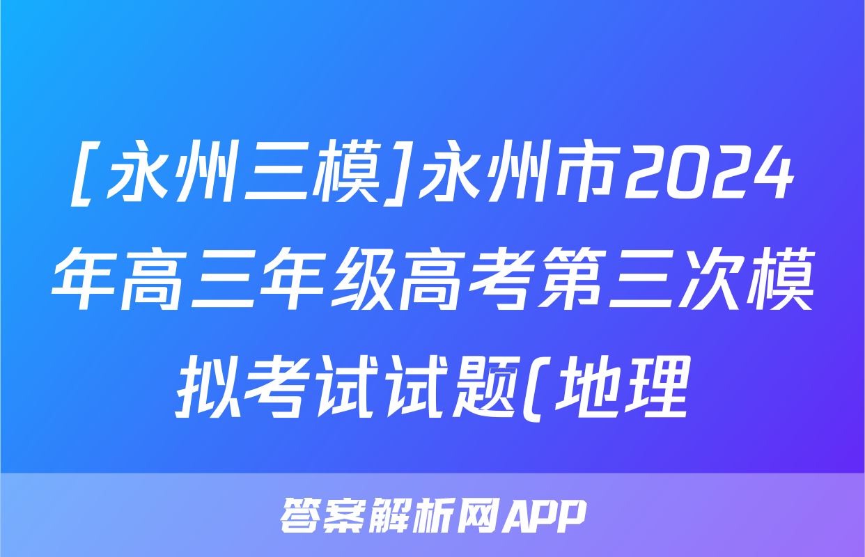 [永州三模]永州市2024年高三年级高考第三次模拟考试试题(地理)正在持续更新,目前2026届海淀八模答案网为大家整理了相关试题及答案,供大家查缺补漏,高效提升成绩。