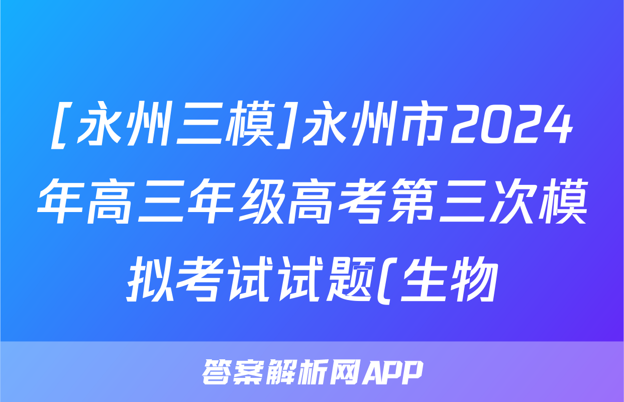 [永州三模]永州市2024年高三年级高考第三次模拟考试试题(生物)正在持续更新,目前2026届海淀八模答案网为大家整理了相关试题及答案,供大家查缺补漏,高效提升成绩。