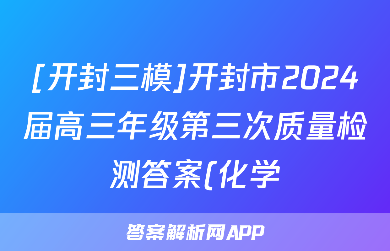 [开封三模]开封市2024届高三年级第三次质量检测答案(化学)正在持续更新,目前2026届海淀八模答案网为大家整理了相关试题及答案,供大家查缺补漏,高效提升成绩。