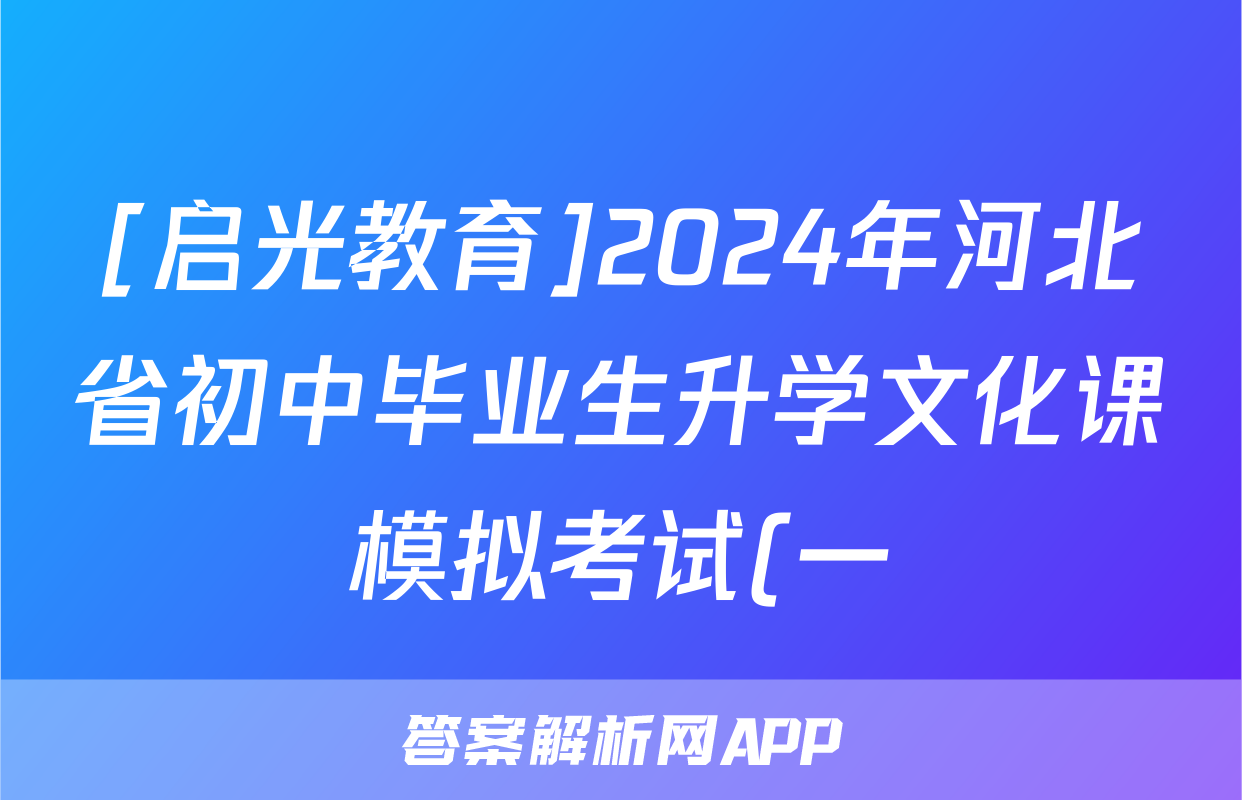 [启光教育]2024年河北省初中毕业生升学文化课模拟考试(一)1试卷答案答案(历史)正在持续更新,目前2026届海淀八模答案网为大家整理了相关试题及答案,供大家查缺补漏,高效提升成绩。