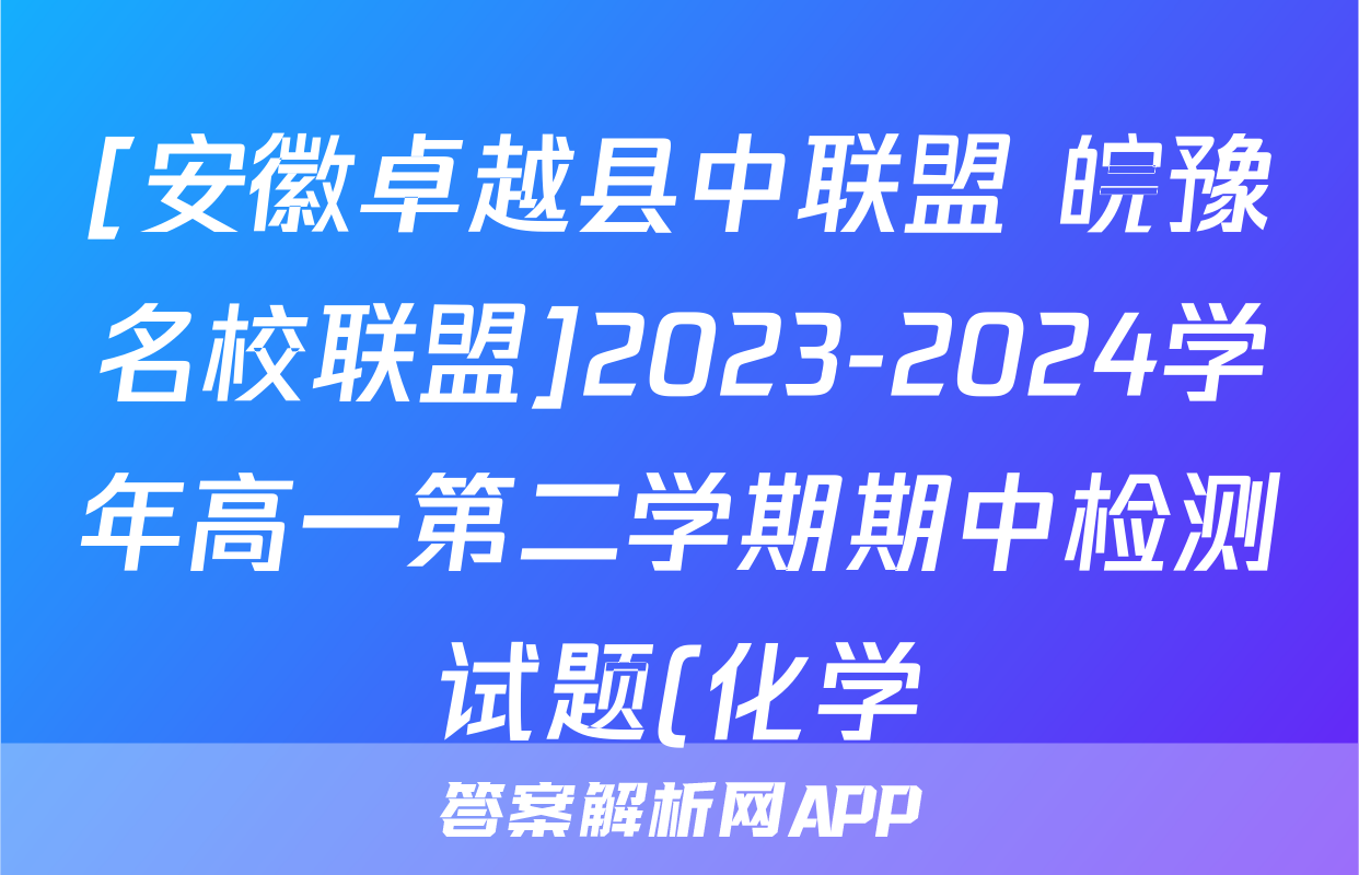 [安徽卓越县中联盟 皖豫名校联盟]2023-2024学年高一第二学期期中检测试题(化学)正在持续更新,目前2026届海淀八模答案网为大家整理了相关试题及答案,供大家查缺补漏,高效提升成绩。