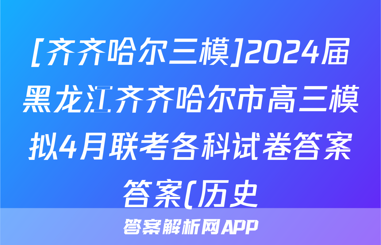 [齐齐哈尔三模]2024届黑龙江齐齐哈尔市高三模拟4月联考各科试卷答案答案(历史)正在持续更新,目前2026届海淀八模答案网为大家整理了相关试题及答案,供大家查缺补漏,高效提升成绩。