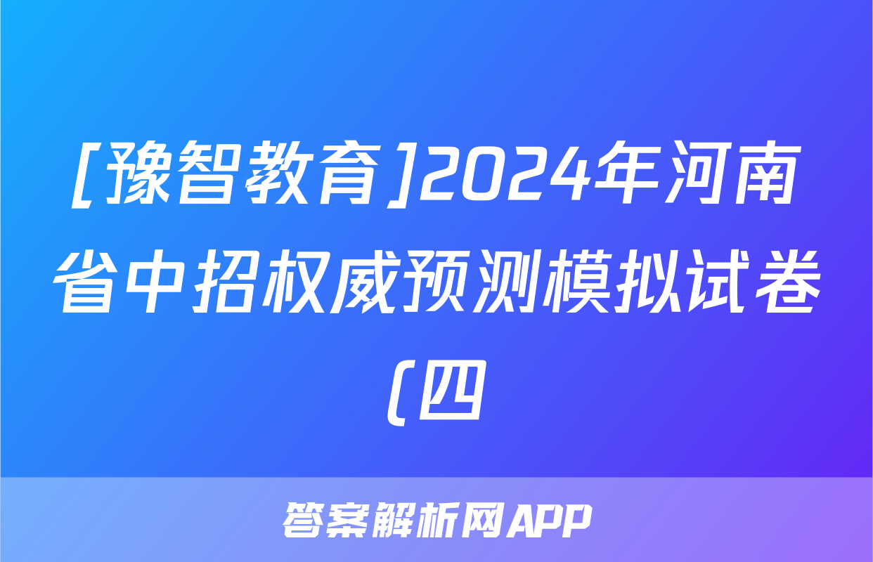 [豫智教育]2024年河南省中招权威预测模拟试卷(四)4化学试题正在持续更新,目前2026届海淀八模答案网为大家整理了相关试题及答案,供大家查缺补漏,高效提升成绩。