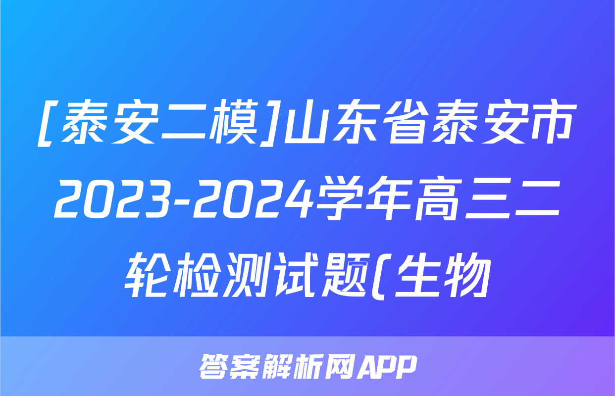 [泰安二模]山东省泰安市2023-2024学年高三二轮检测试题(生物)正在持续更新,目前2026届海淀八模答案网为大家整理了相关试题及答案,供大家查缺补漏,高效提升成绩。