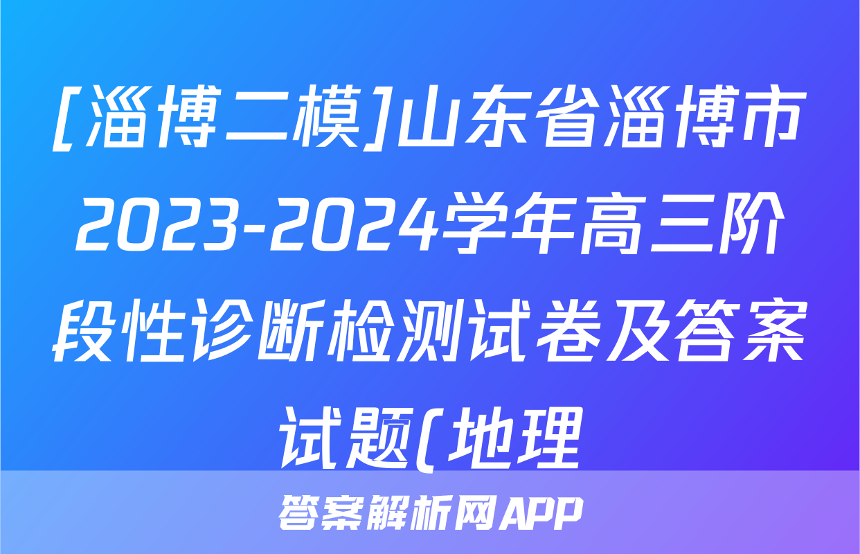 [淄博二模]山东省淄博市2023-2024学年高三阶段性诊断检测试卷及答案试题(地理)正在持续更新,目前2026届海淀八模答案网为大家整理了相关试题及答案,供大家查缺补漏,高效提升成绩。