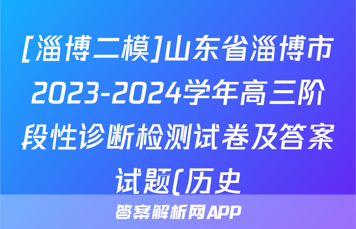 [淄博二模]山东省淄博市2023-2024学年高三阶段性诊断检测试卷及答案试题(历史)正在持续更新,目前2026届海淀八模答案网为大家整理了相关试题及答案,供大家查缺补漏,高效提升成绩。