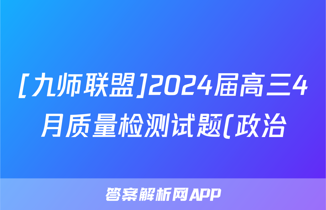 [九师联盟]2024届高三4月质量检测试题(政治)正在持续更新,目前2026届海淀八模答案网为大家整理了相关试题及答案,供大家查缺补漏,高效提升成绩。