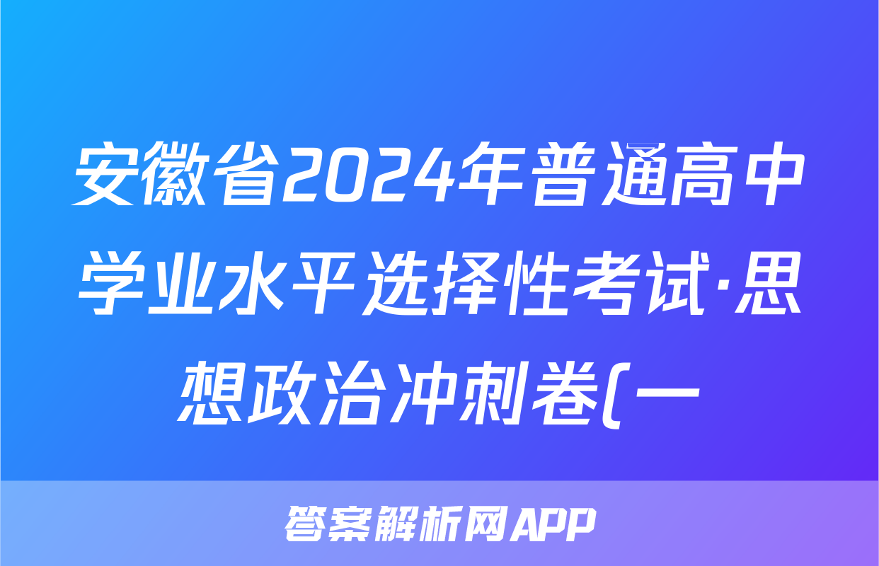 安徽省2024年普通高中学业水平选择性考试·思想政治冲刺卷(一)1[24·(新高考)CCJ·思想政治·AH]答案正在持续更新,目前2026届海淀八模答案网为大家整理了相关试题及答案,供大家查缺补漏,高效提升成绩。