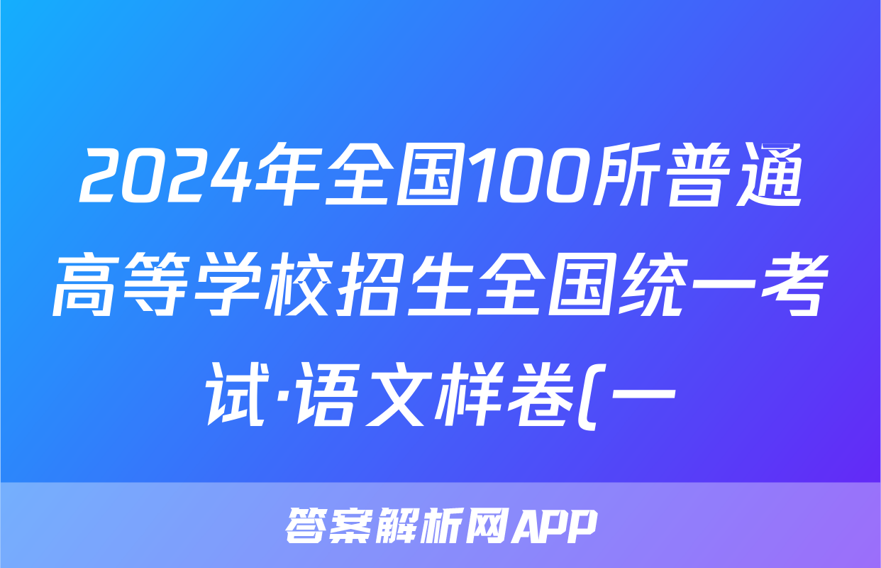 2024年全国100所普通高等学校招生全国统一考试·语文样卷(一)1[24·(新高考)高考样卷·语文·Y]试题正在持续更新,目前2026届海淀八模答案网为大家整理了相关试题及答案,供大家查缺补漏,高效提升成绩。