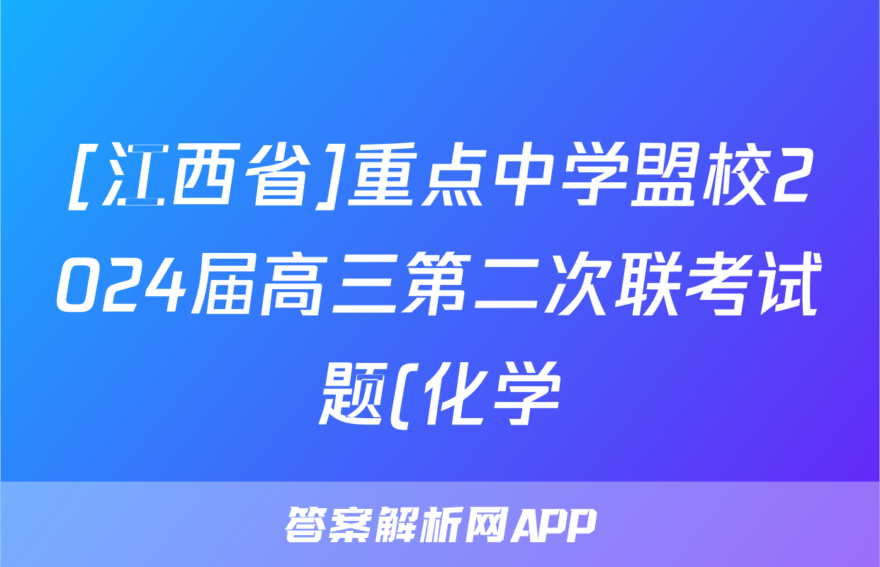 [江西省]重点中学盟校2024届高三第二次联考试题(化学)正在持续更新,目前2026届海淀八模答案网为大家整理了相关试题及答案,供大家查缺补漏,高效提升成绩。
