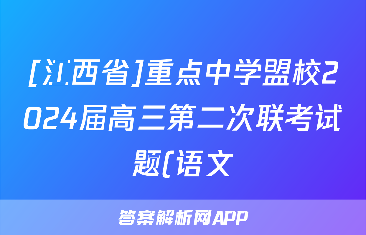 [江西省]重点中学盟校2024届高三第二次联考试题(语文)正在持续更新,目前2026届海淀八模答案网为大家整理了相关试题及答案,供大家查缺补漏,高效提升成绩。
