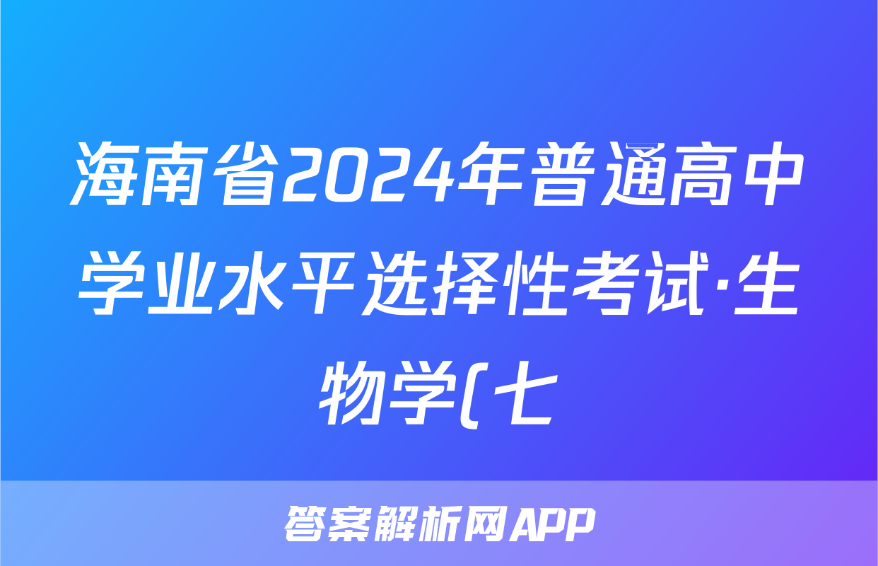 海南省2024年普通高中学业水平选择性考试·生物学(七)7[24·(新高考)ZX·MNJ·生物学·HAIN]答案正在持续更新,目前2026届海淀八模答案网为大家整理了相关试题及答案,供大家查缺补漏,高效提升成绩。