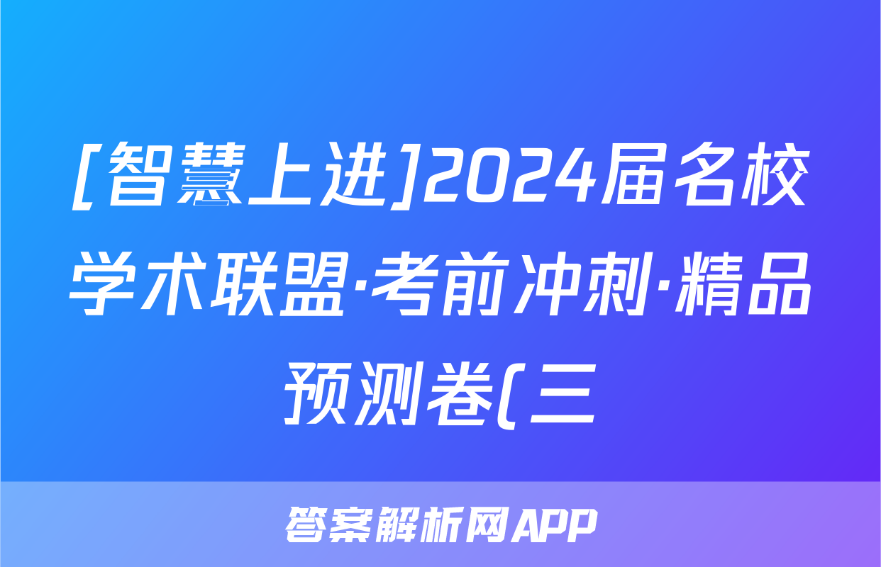 [智慧上进]2024届名校学术联盟·考前冲刺·精品预测卷(三)3试卷及答案试题(地理)正在持续更新,目前2026届海淀八模答案网为大家整理了相关试题及答案,供大家查缺补漏,高效提升成绩。