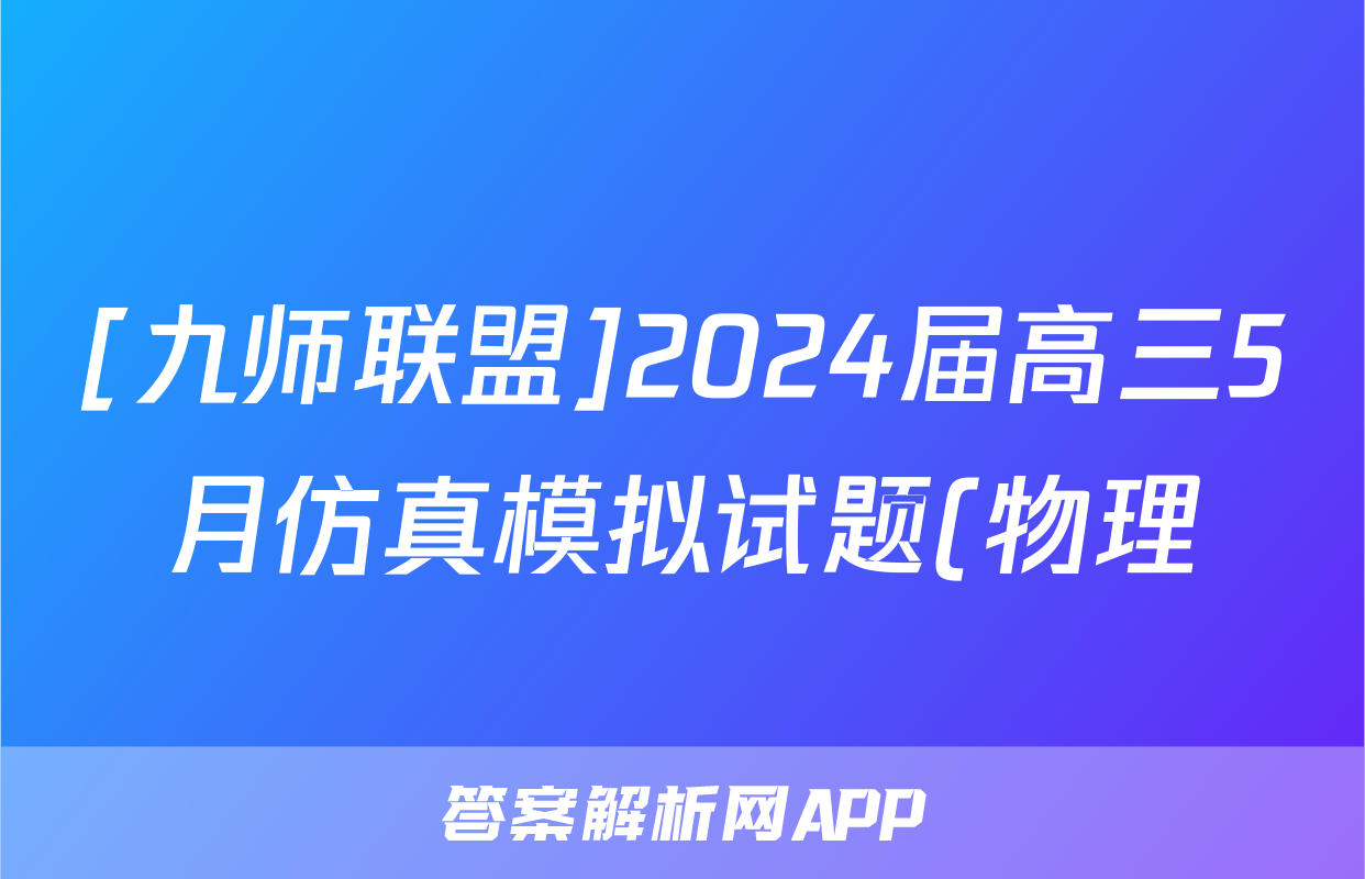 [九师联盟]2024届高三5月仿真模拟试题(物理)正在持续更新,目前2026届海淀八模答案网为大家整理了相关试题及答案,供大家查缺补漏,高效提升成绩。