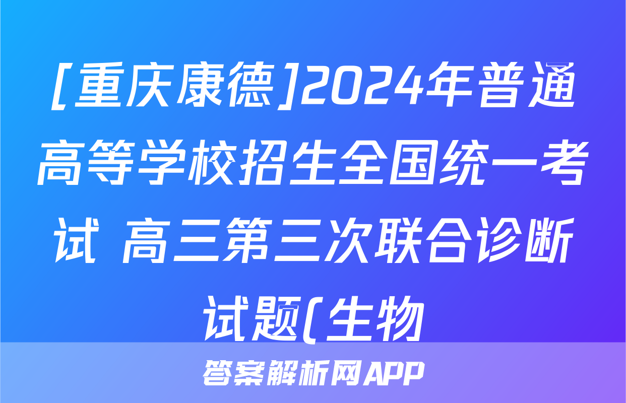 [重庆康德]2024年普通高等学校招生全国统一考试 高三第三次联合诊断试题(生物)正在持续更新,目前2026届海淀八模答案网为大家整理了相关试题及答案,供大家查缺补漏,高效提升成绩。