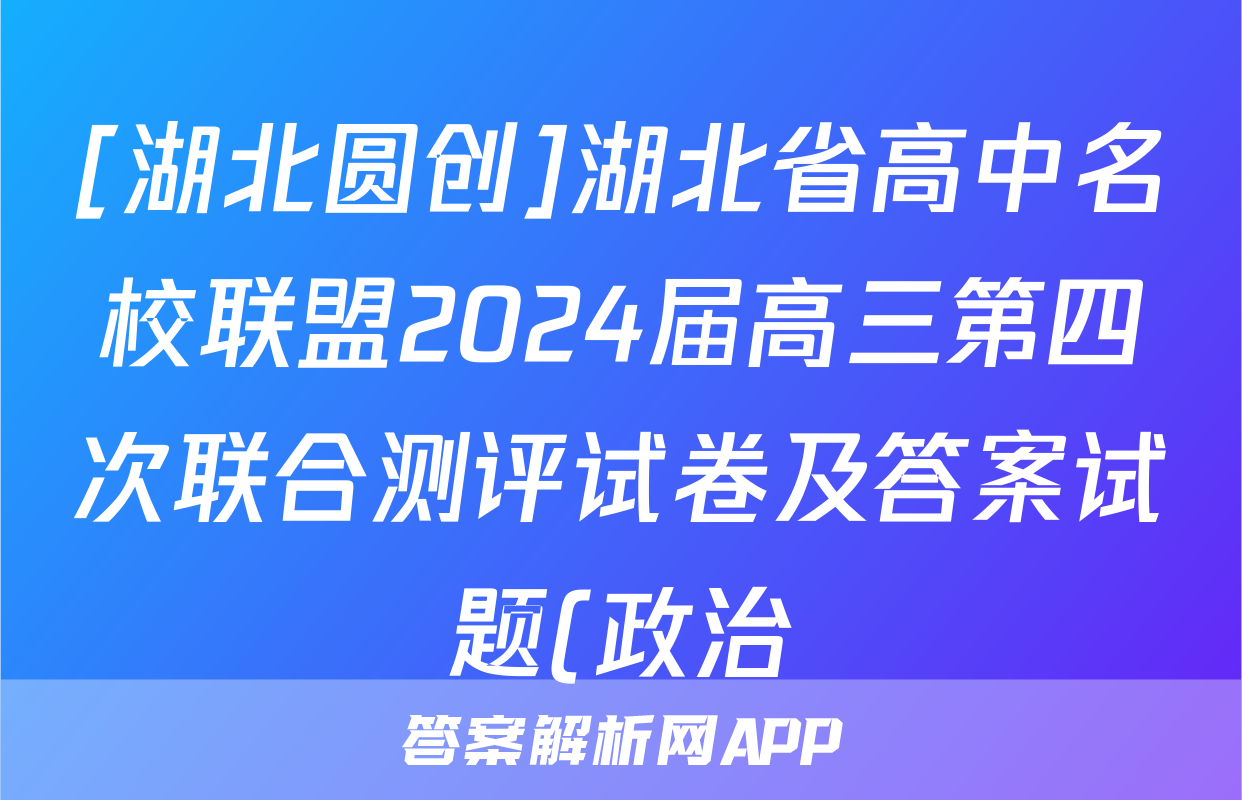 [湖北圆创]湖北省高中名校联盟2024届高三第四次联合测评试卷及答案试题(政治)正在持续更新,目前2026届海淀八模答案网为大家整理了相关试题及答案,供大家查缺补漏,高效提升成绩。