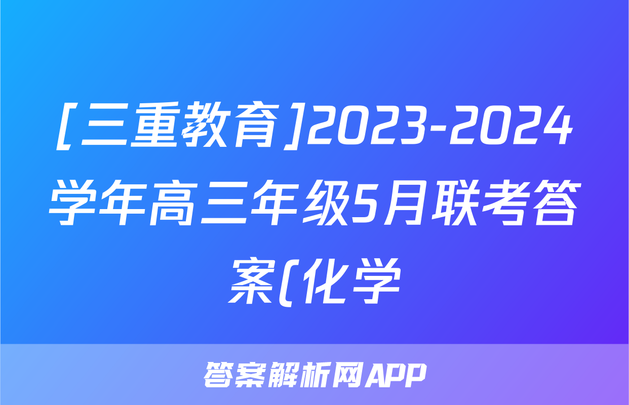[三重教育]2023-2024学年高三年级5月联考答案(化学)正在持续更新,目前2026届海淀八模答案网为大家整理了相关试题及答案,供大家查缺补漏,高效提升成绩。