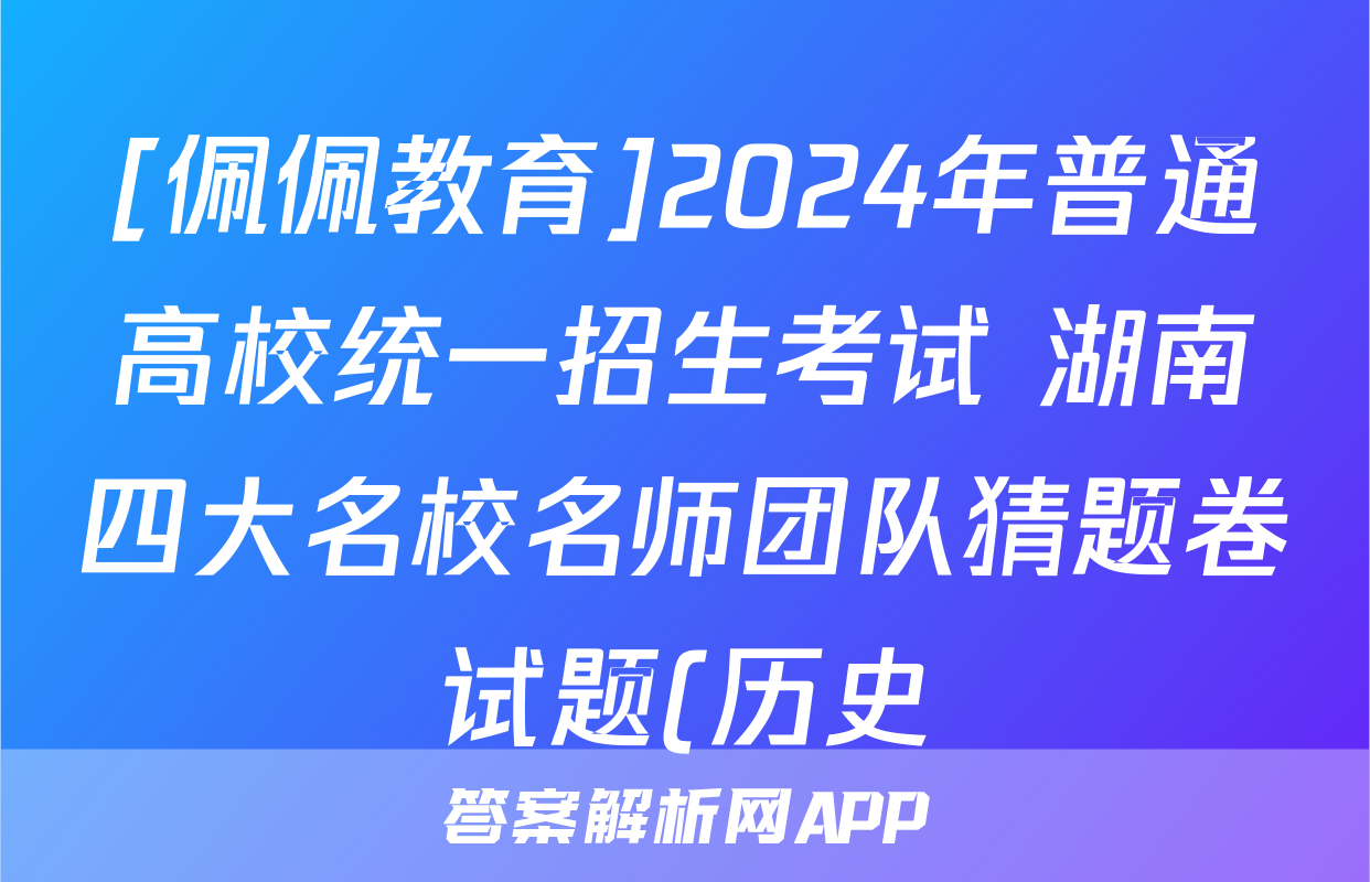 [佩佩教育]2024年普通高校统一招生考试 湖南四大名校名师团队猜题卷试题(历史)正在持续更新,目前2026届海淀八模答案网为大家整理了相关试题及答案,供大家查缺补漏,高效提升成绩。