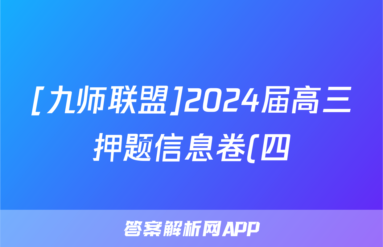 [九师联盟]2024届高三押题信息卷(四)4政治(XKB-L)试题正在持续更新,目前2026届海淀八模答案网为大家整理了相关试题及答案,供大家查缺补漏,高效提升成绩。