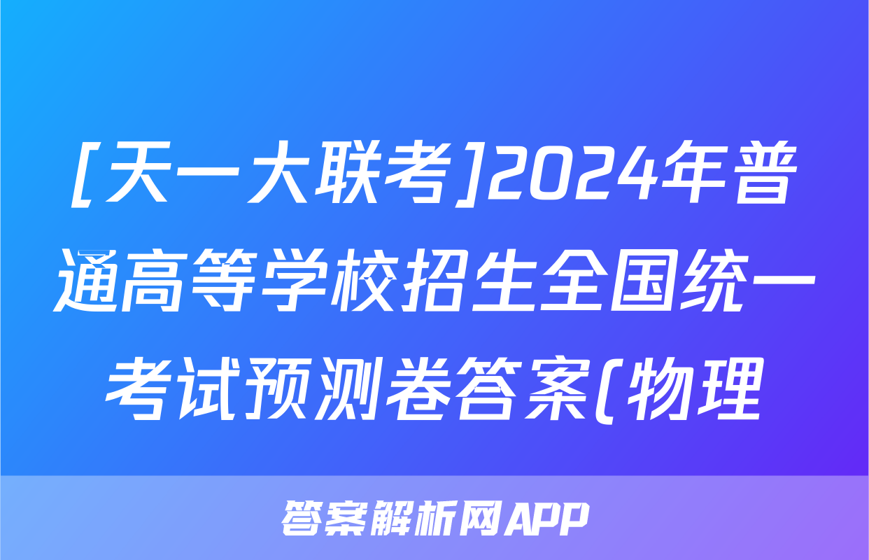 [天一大联考]2024年普通高等学校招生全国统一考试预测卷答案(物理)正在持续更新,目前2026届海淀八模答案网为大家整理了相关试题及答案,供大家查缺补漏,高效提升成绩。