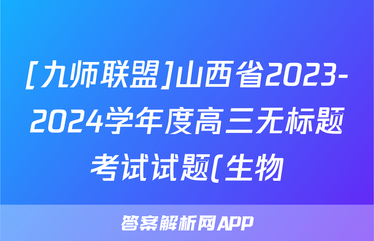 [九师联盟]山西省2023-2024学年度高三无标题考试试题(生物)正在持续更新,目前2026届海淀八模答案网为大家整理了相关试题及答案,供大家查缺补漏,高效提升成绩。