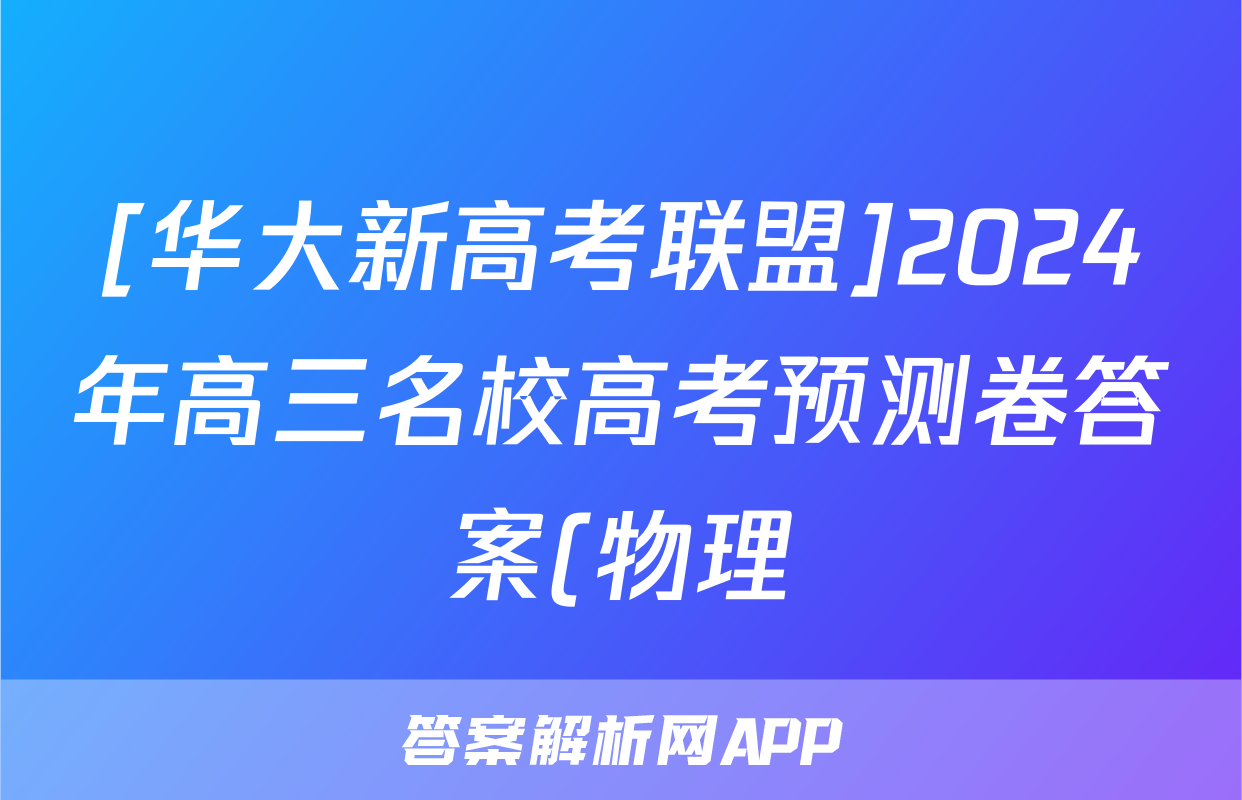 [华大新高考联盟]2024年高三名校高考预测卷答案(物理)正在持续更新,目前2026届海淀八模答案网为大家整理了相关试题及答案,供大家查缺补漏,高效提升成绩。