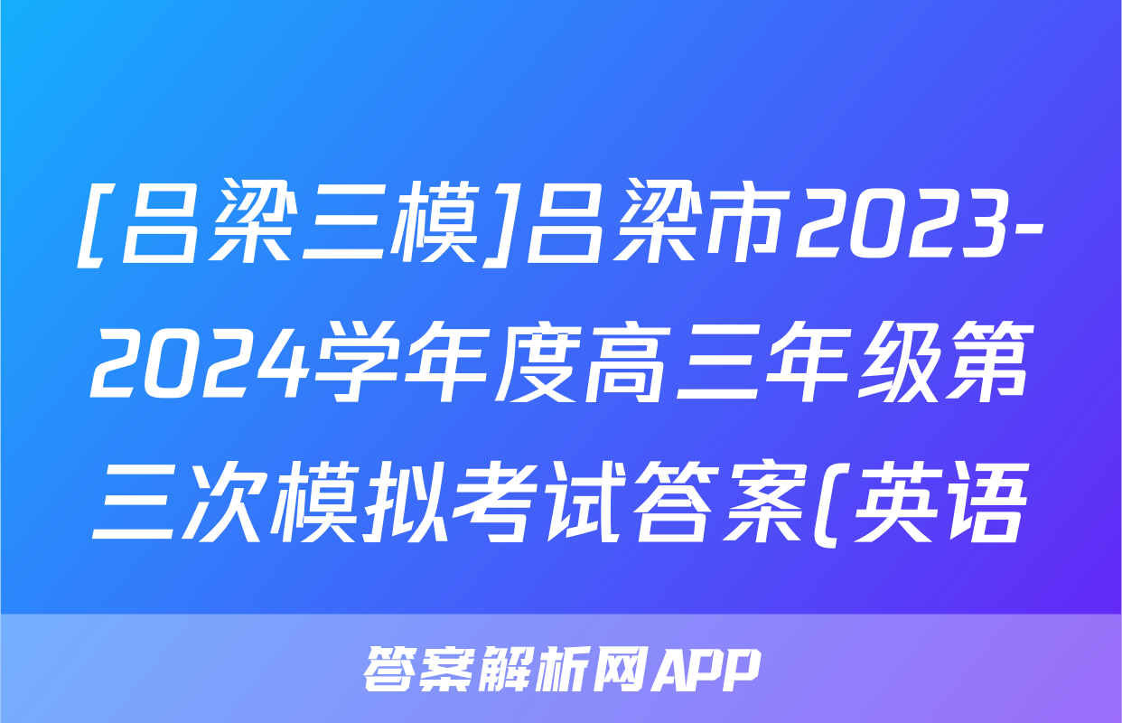 [吕梁三模]吕梁市2023-2024学年度高三年级第三次模拟考试答案(英语)正在持续更新,目前2026届海淀八模答案网为大家整理了相关试题及答案,供大家查缺补漏,高效提升成绩。