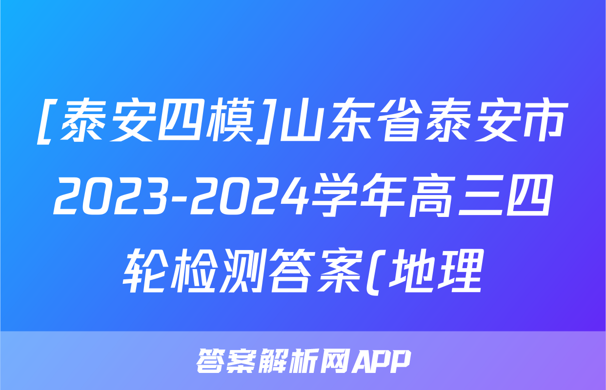 [泰安四模]山东省泰安市2023-2024学年高三四轮检测答案(地理)正在持续更新,目前2026届海淀八模答案网为大家整理了相关试题及答案,供大家查缺补漏,高效提升成绩。