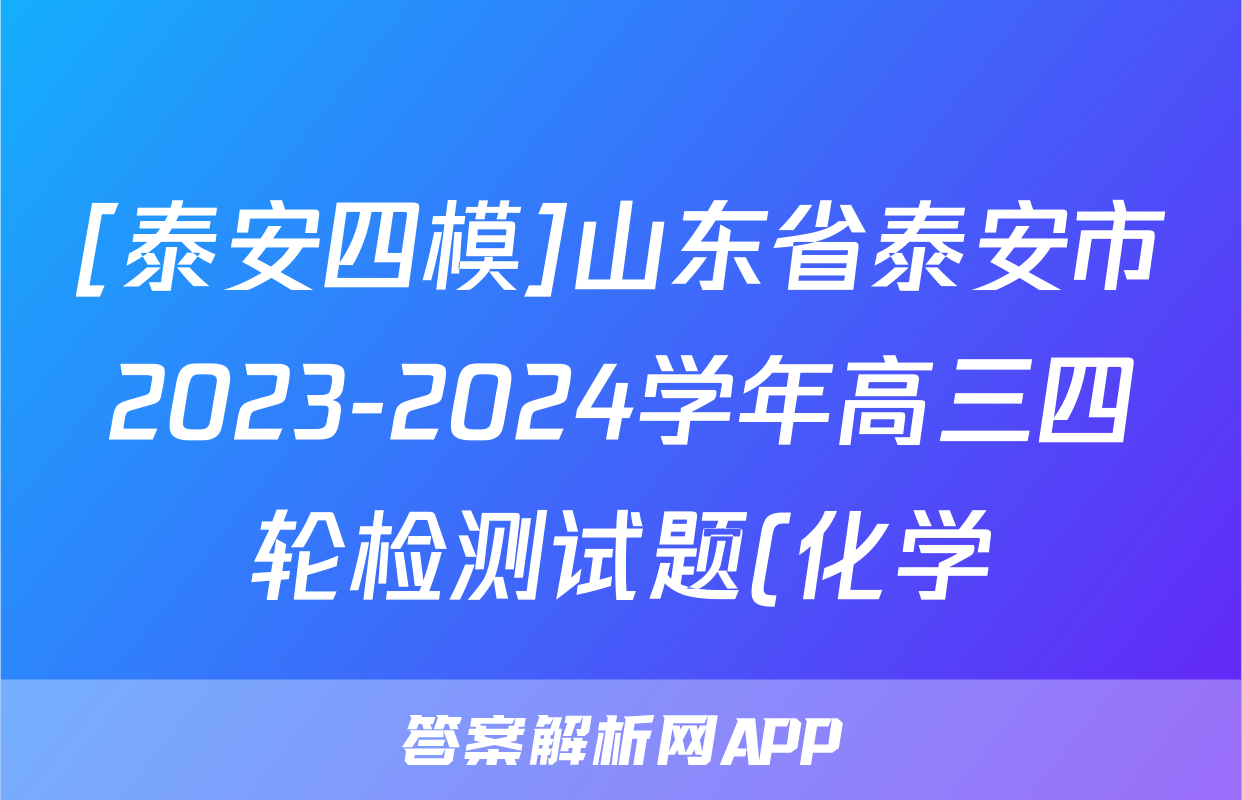 [泰安四模]山东省泰安市2023-2024学年高三四轮检测试题(化学)正在持续更新,目前2026届海淀八模答案网为大家整理了相关试题及答案,供大家查缺补漏,高效提升成绩。