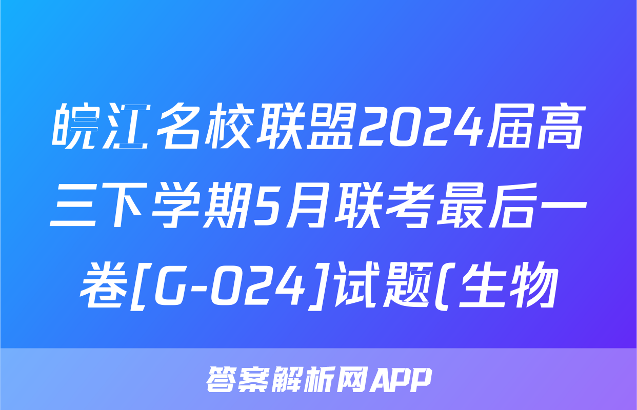 皖江名校联盟2024届高三下学期5月联考最后一卷[G-024]试题(生物)正在持续更新,目前2026届海淀八模答案网为大家整理了相关试题及答案,供大家查缺补漏,高效提升成绩。
