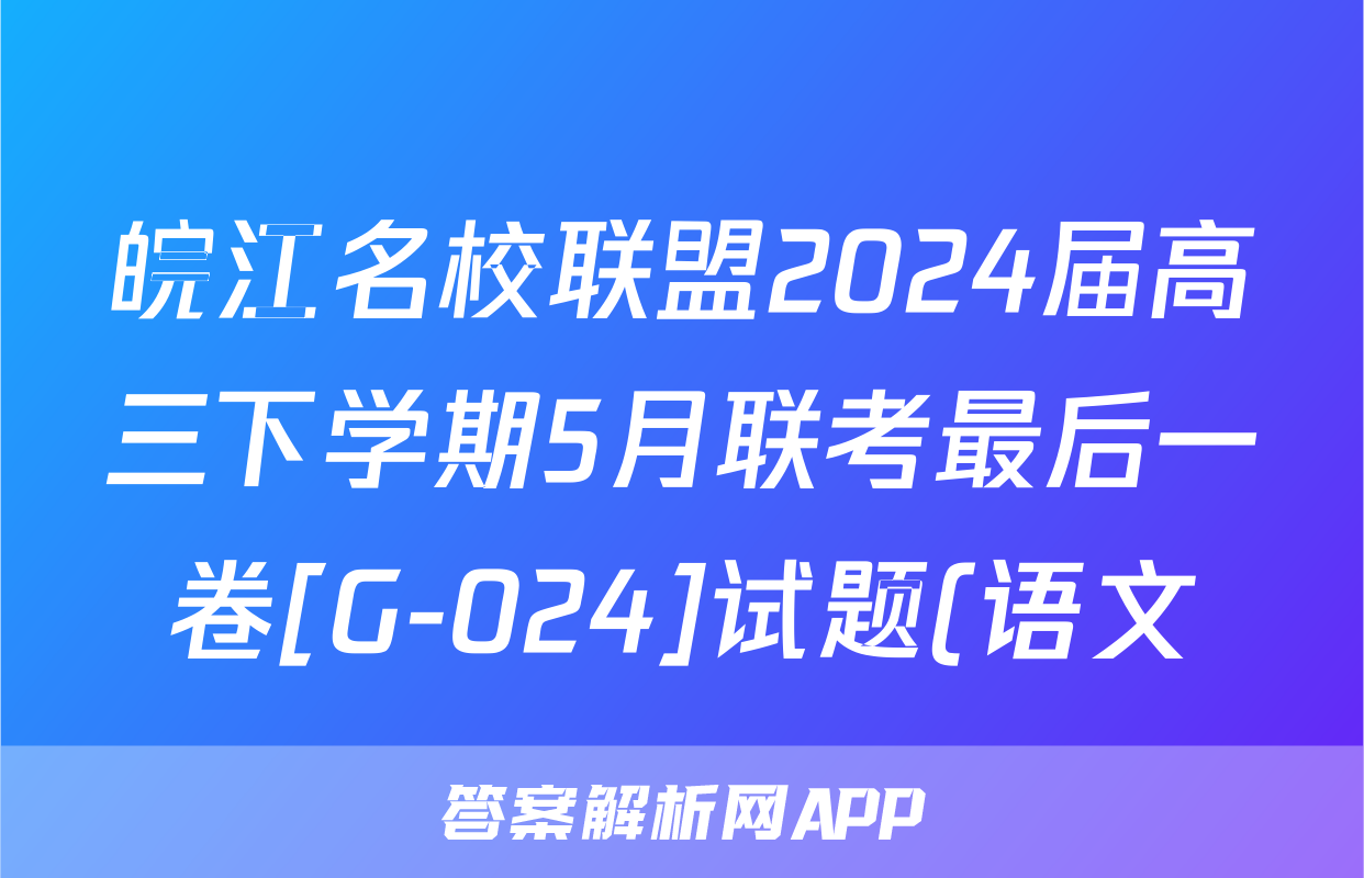 皖江名校联盟2024届高三下学期5月联考最后一卷[G-024]试题(语文)正在持续更新,目前2026届海淀八模答案网为大家整理了相关试题及答案,供大家查缺补漏,高效提升成绩。